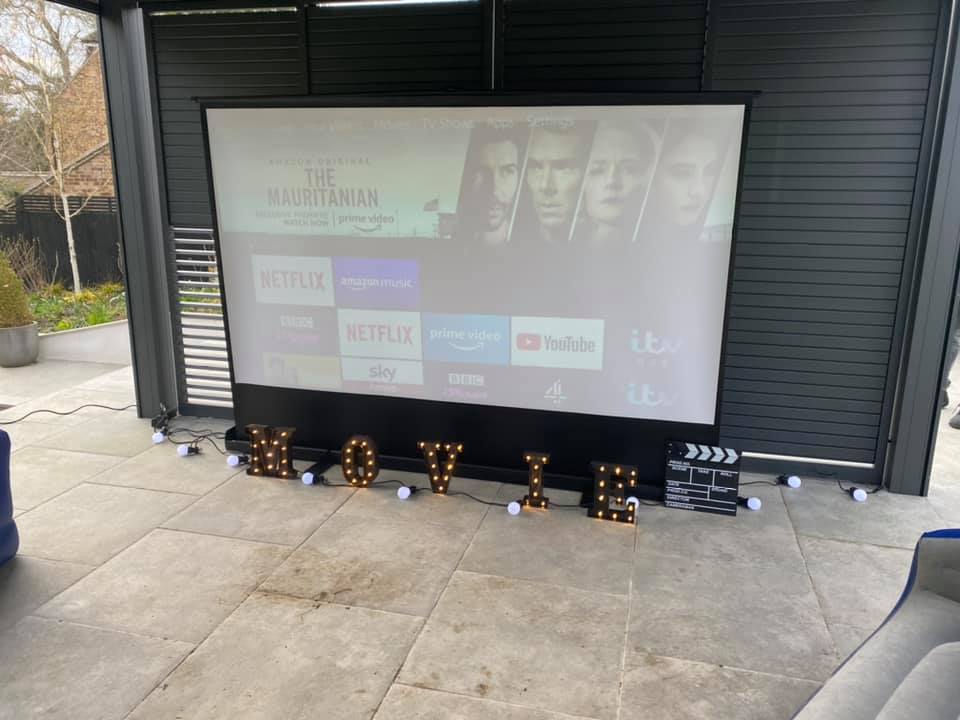 Greenbow Entertainment endervour to provide you a movie night to remember, with 4 different screens that cover indoor and outdoor set ups, ranging from 85 inch, 100 inch screens or our 14 ft and 20 ft inflatable outdoor screens we can ensure you a set up that fits your needs. We also can provide you our 6x3m gazebo.