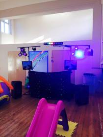 The party comes complete with a full disco set up with screens and projectors showing videos throughout.