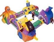 An enormous inflatable playland awaits your children with the amazing Airflow Adventures Undersea World.The ocean-themed network of colourful tunnels and pods is a great new concept that is going to revolutionise softplay. Coming complete with four fun pods - the Pirate Ship Olly the Octopus Sammy Shark and the Yellow Submarine - and a plethora of tunnels as well as airlock entrances observation windows escape hatches sea creatures and sea faring vessels the Airflow Adventures will keep your kids entertained for hours. It takes less than one minute to inflate with the fan provided and will stay inflated with a continuous gentle airflow.